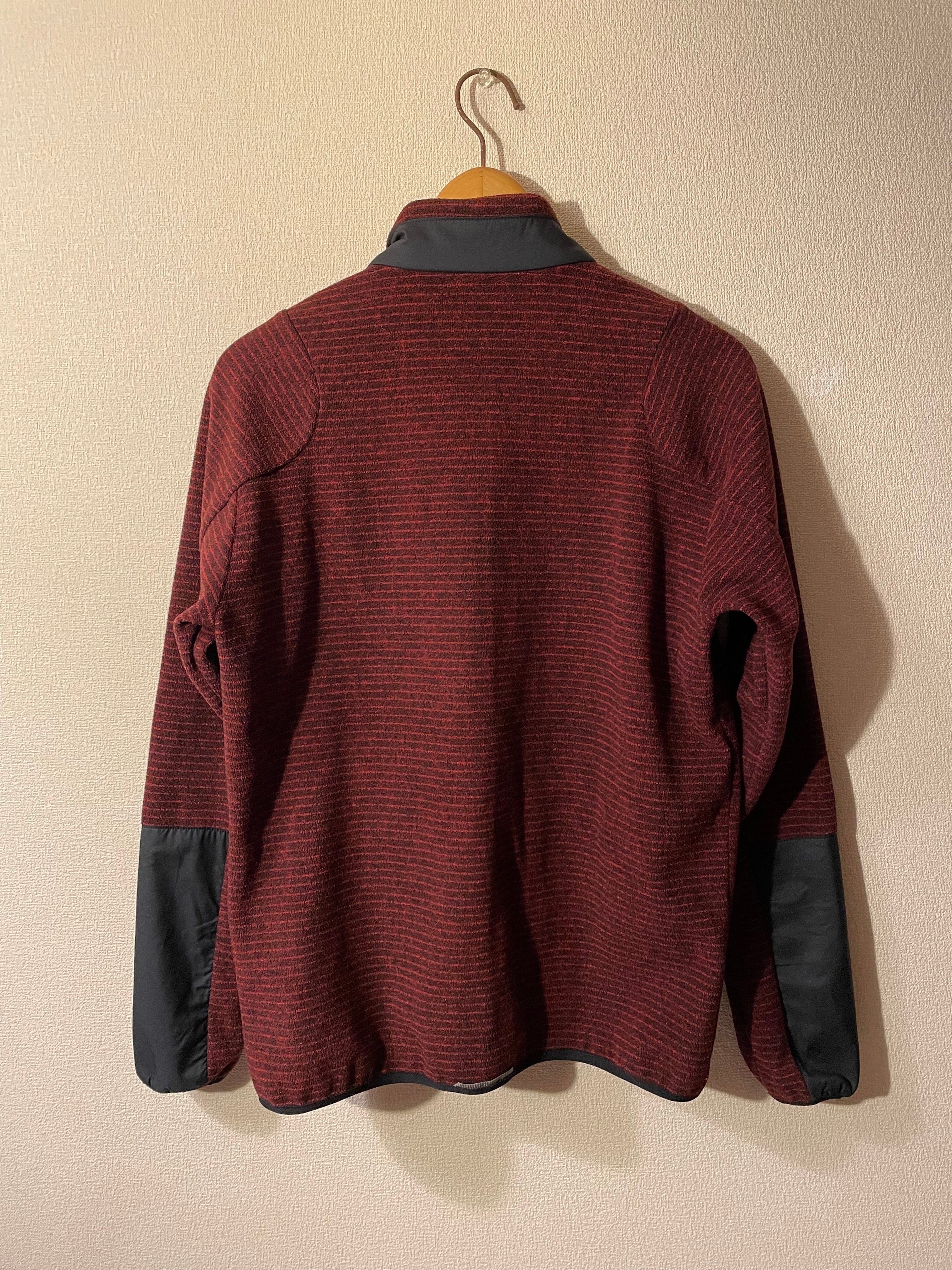 後ろは赤黒の細かいボーダー