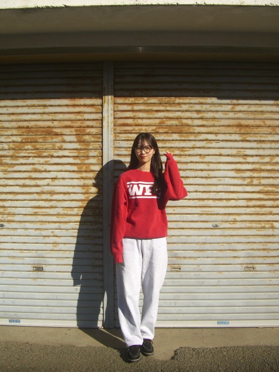 赤色にデカ白プリントが可愛いっす